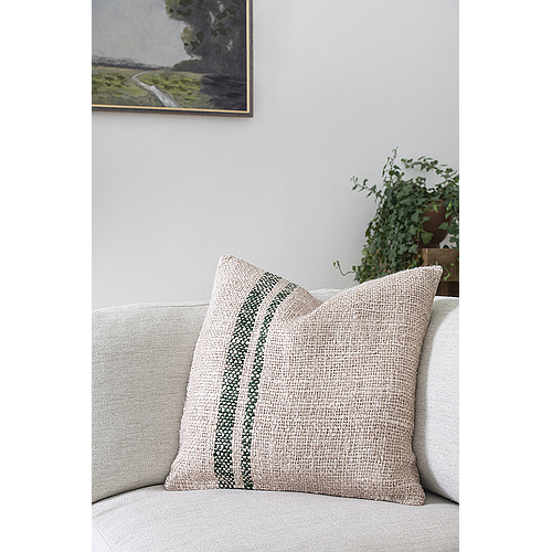 BEIGE WITH GREEN STRIPED CUSHION COVER